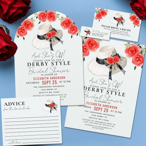Derby Style Stor Hatt Rosa Bröllopsdusch Inbjudningar