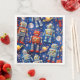 On a journey through the stars with this vibrant galactic robot exploration design set against a deep shimmering nebula filled with twinkling stars and drifting golden asteroids. This artwork features a charming squad of retro style 10 robots the central character with its bold red lightning bolt and bright yellow eyes stands out in high definition detail accompanied by its mechanical companions in classic silver and forest green. The playful sticker style white outlines around the robots give the piece of modern Pop art feel while the cosmic backdrop adds a sense of infinite wonder it's a perfect blend of nostalgic mechanical charm and the vast