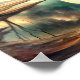 En massiv metallsfär vilar över ett reflekterande, ofruktbart landskap och skapar en svår men meriserande scen. Himmel är fyllt med vibrerande, virvelformade moln, vilket kastar dramatiska reflektioner i vatten nedanför.