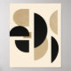 Detta är en minimalistisk, geometrisk abstrakt design som har en arrangemang av enkla, rena former, främst halvcirklar och en liten rektangel. Sammansättningen användor en sofistikerad och muterad palett i färg som består av fast svart, ljummet sandbeige eller tan och en ljusbenvit bakgrund. Blädformerna verkar ha en subtil texturerad eller spräcklig avsluta, som påminner om betong, gips eller en kornig papper. Formerna är noggrant balanserade och förskjutna, skapar ett samspel mellan det positiva och negativa rummet och föreslår en dynamisk, nästan arkitektonisk struktur. Den totala estetien är en av medelhundradets moderna enkelhet och balans i eleganten.
