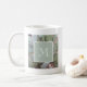 Desert Cactus Monogram kaffe mugg, med en grönt Prickly Pear-bild och en grönt och vit gräns. Med vit anpassade kan du lägga till en egen ursprungstext. Underbar för att lägga till en liten bit av öknen sydväst till din favoritdryck i hetten.