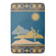 Desert Cactus Scene. Vackra lugnande scenen med kaktus med geometriskt mönster överst och grund i badmatt i Blue, Guld, Linen. Bakom dig i olika skuggor till kostym din hemdekanter eller som en gåva till någon speciell. Handdukar att matcha.