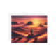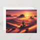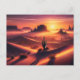 Upplev öknens slående skönhet i skymningen. Med det här vykortet fångas de varma nyanserna i inställningsområdet sol, vilket ger en gyllene glöd över stora sanddyner och tåliga sten-formationer. Silhuetterad kaktusfärg står hög mot den färgstarka himmel, som blandar skuggor av orange, rosa och lila. Perfekt för ökenäventyrare, natur älskare och de som fångas av den trollerska som råder i torra landskap.