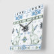 Två vaksamma harar står i centrum mot en sydvästra mönster, deras varnande ögon och upprätt öron som ekar markens anda. Med ökentoner av kröd, blå och svart