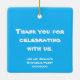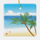 Fyrkantig förstklassig utsmyckning med en bild av en bild-perfekt-dag på en ökenisle. Baksidan är blå med valfri text. Se hela samlingen för fartygsdekoration i SPECIELLA TUUCHES | Avsnittet Party favors.