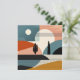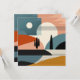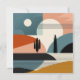 Ett abstrakt landskap i en ökenscen med linjer och former i brunt, orange, turkos, beige, tan och svart.