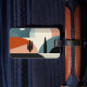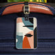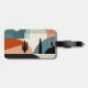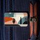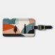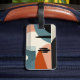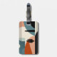 Ett abstrakt landskap i en ökenscen med linjer och former i brunt, orange, turkos, beige, tan och svart.