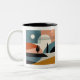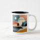 Ett abstrakt landskap i en ökenscen med linjer och former i brunt, orange, turkos, beige, tan och svart.