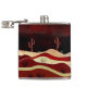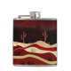 Abstraktens landskapsplats i en öken med saguaro cactus, scrub brush, backe och stjärnor i röda, krimson, beige och fet struktur.