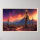 Desert på Dusk Sequoia Cactus Colorful Art Poster