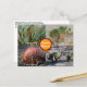 This postcard identifies four unique desert plants including the Desert Agave, Desert Fan Palm, Barrel Cactus, and Cholla Cactus.