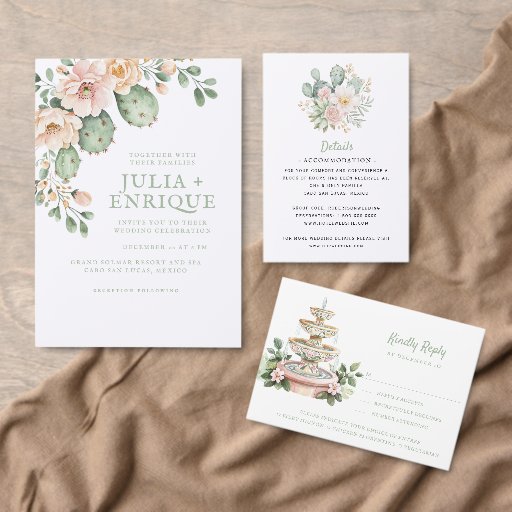 Den här vackra aktualiteten med temat OSA kort har vattenfärgsdesign för bröllop i öknen. Färg som används omfattar oliv grönt grönt, sage och ljus rosa.