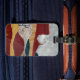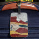 Ett abstrakt landskap med ett unikt färg och struktur som visar en ökenscen med ett stigning blått sol och en kaktus i röda nyanser, grått, beige och blått.