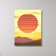 Canvas i ett retro, minimalistiskt ökensolnedgång över backe, i skuggor av djup rost orange, gyllene gult och brunt