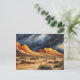 Bilden skildrar ett dramatiskt ökenlandskap under vad som verkar vara en stormig vriden eller mörker. Himlar är mörk och stormig, med djupt blå och svarta moln som snurrar över. En slående blixt skär genom himlar och belyser scenen med sitt ljusa vita ljus. I förgrunden utlöses öknen i varma toner av gult, orange och brun, vilket antyder förekomst av sand och torr jord. Spridningen över öknen golv är flera ökenväxter, som kan vara yucca eller liknande arter, som ger liv till den annars torra scenen. Mitten har en rad stora berg. Bergarna till lämnad är slagna i ett varmt, gyllene ljus, möjligen från ett läge eller stigning sol, eller från blixten själv, som ge dem ett vibrerande och nästan världsfrånvänt glöd. Bergarna på högerna går ner i avstånd och målas i kallare blått och lila som skapar djup och kontrast till det varmare färg. På det hela taget förmedlar bilden en känsla av naturens råa skönhet och kraft, och stormen ger en dynamisk och elektrifierande bakgrund till det sereniska ökenlandskapet. Målningen kan framkalla känslor av fruktan eller besinning i tittaren, eftersom den fångar ett ögonblick av naturligt drama.