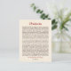 De älskade tidlösa orden av tröst, uppmuntran och visdom från Desiderata av Max Ehrmann gör ett postkort som är både meningsfullt och tilltalande. Texten är tryckt i mörkbrun och djupröd mot en blek pergamentliknande bakgrund. Skicka det till en vän eller visa det som minikonst.