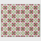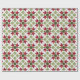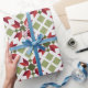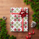 En täckemönsterdesign av julstjärnor i grönt och rött med ett houndstoothtryck.