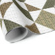 En täckemönsterdesign av kvarter i grönt och bruntet med en houndstooth skrivar ut.