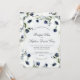 En romantisk vattenfärgillustration av anemoner omger texten av detta inbjudanfölje. Eleganten skuggar av franska blått, vis mangrönt och marindans mellan blommorna i detta riktigt unika bröllopinbjudanfölje.