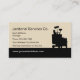 En redigerbar mall för Janitorial städning-affärskortet skapat med en städning kundvagn i bakgrunden som kan representera en städning professionell- eller leverantörsdistributör.