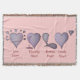 Denna uppsättning av fyra hjärtaillustrationer föreställer fyra känslor av hjärtan, ensam hjärta, kärlekhjärta, blöda hjärta och bruten hjärta. De original- illustrationerna har skapats i mjuka färgpennor, tonar lilan markeras av en svart skisserar, och nedanfört är varje hjärtaillustration titeln av varje lite hjärtabilden. De fyra hjärtorna berättar en kort berättelse av en kärleksaffär, och de ser mycket särskiljande på denna mysiga filt för anpassadet.