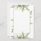 Det här är en tom bröllopsinbjudan för dig att anpassa; den har bladsprays i nyanser av olivgrönt och salvia med små rosa blommor och en central rektangel där du kan lägga till din egen text.