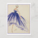 Detta vykort är en återgivning av en mode-formad platta/skiss av en lila kvällskläda/gåva av Marie-Louise Carven. I samlingen Musée de la Mode de la Ville de Paris, Frankrike.