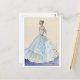 Detta vykort är en återgivning av en mode-formad platta/skiss av en blå kvällsklänning/gäst av Marie-Louise Carven. I samlingen Musée de la Mode de la Ville de Paris, Frankrike.