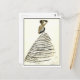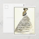 Detta vykort är en återgivning av en plåt/skiss av en svart eller vit kvällsklänning/gäst av Marie-Louise Carven i mode. I samlingen Musée de la Mode de la Ville de Paris, Frankrike.