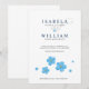 Utformningen av inbjudningskortet baseras på enkelhet. Stil är tidlöst och framställs med blått vattenfärgsblomning.
