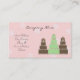 Rosa- och vitpolkamerabakgrund med tre designer-kakor i choklad och mynta-grönt. Det här affärskortet skulle vara perfekt för en Cake-dekorationsfirma, efterrätt, godis, bakning, restaurang osv.