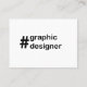 Affärskortet Graphic Designer designat av Nisha Prabhu. Helt Anpassade. Anpassa med dina detaljer. Affärskortet Graphic Designer är en professionell som ger en enastående bild av dina designkunskaper och -kunskaper. Det här affärskortet är mycket detaljerat utformat och designat för att lämna ett varaktigt intryck på potentiella kunder och samarbetspartner. På affärskortets framsida finns en elegant och modern typografi för svart och vit personlig som visar "#Graphics designer" på ett fet och öga-fångstsätt. Baksidan av affärskortet har gott om utrymme för att visa din kontaktinformation. Affärskortet Graphic Designer är med sin eleganta design och detaljrikedom ett kraftfullt verktyg som hjälper dig att göra ett minnesvärt första intryck. Ge ut kortet vid nätverksevenemang, klientmöten eller när du vill visa din professionalism och kreativitet som grafikdesigner.
