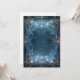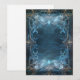 En elegant, utsmyckad bakgrund med en tom blå kortram för att skriva på, omgiven av virvlande mönster och invecklad design i nyanser av mörkgrått och ljusguld, med subtila antydningar om magisk energi som lyser subtilt inom designen. Den övergripande effekten är en som antyder lyx eller fantasi.