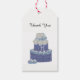 Vacker bröllops- eller speciell begivenhetstårta med blå och vita hortensia blommor. Ett vackert presentkort. Anpassa efter eget tycke.
