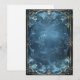 En elegant, utsmyckad bakgrund med en tom blå kortram för att skriva på, omgiven av virvlande mönster och invecklade detaljer i nyanser av mörkgrått och ljusguld, med subtila antydningar om magisk energi som lyser subtilt inom designen. Den övergripande effekten är en som antyder lyx eller fantasi.