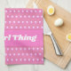 Den här lysande rosa kökshandduken har en vacker kombination av ljus och mörk rosa färg. En passande rosa-banderoll visningar "Det är A Girl Sak" som enkelt och snabbt kan anpassas om du vill.