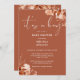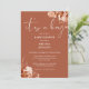 En elegant, en snyggt babyduschinbjudan med elegant, typografi och söt botaniskt harts på en terrakotta bakgrund. Designad av Thisisnotme©