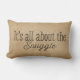 Vintagelooken med Burlapstilen kudder "den är all om snugglen" som skrivs ut på bekläda. Tillfoga något namn eller formulera till baksidaen för att personifiera.