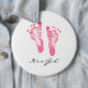 En chic rosa favör för party för baby shower för flicka för vitfödelsemeddelande knäppas med nyfödda bebisfotspår. Personifiera, genom att tillfoga namn av den dyrbara nyfödd bebisflickan till det beställnings- textområdet och tillfoga ett handlag av väderkornet, genom att ändra bakgrunden till färgen av ditt primat. Original- konst©TracieKaska