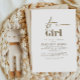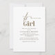 Mjuk, snyggt och charmig! Den här guld-accenterade "Det är en flickduschinbjudan" är perfektens sätt att fira din lilla prinsessa. Med en minimalistisk pekpenning och typografi av eleganten ger det en modern men tidlös känsla för er speciella händelse. En måste ha för en klasslig babydusch!