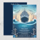 Allt är ombord med Rope Knot Boat Frakt Navy Blue Nautical Wedding bjudande. Denna konstruktion fångar det väsentliga i havscharmen med en kantig rep och motiv för frakten mot en djup marin blå bakgrund. Perfekt för par att planera havets nautiska firande. Be nu gästerna i inbjudan att göra en resa i kärlek och äventyr på er speciella dag.