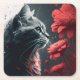Dessous de verre chat fleur le regard underlägg papper kvadrat