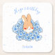 Mignon lapin entouré d'élégantes fleurs pour la fête d'anniversaire et le baby shower de votre enfant. Dessous de verre papier personnalisé avec le nom de votre enfant. Dessin d'un petit lapin entouré de fleurs. Produit faisant partie d'une collection.