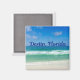 Ett vackert strandfotografi som tagits på det perfekta semestermålet Destin i Florida. Den vackra grönten vatten i Sandestin tvättar upp till sandstranden under serene blå himmel för att göra perfekten till scenfotografi keepsaké magnet.