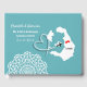 En gäst i snyggt i bröllop för par gifta sig på den grekiska ön Santorini, med en vit silhouette karta på sida med sött rött kärlek-hjärtan och så lätt att anpassa sig efter ditt personliga roligt och bok-datum