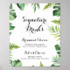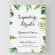 Denna destination tropical grön signaturdryck skylt är perfekt för ett enkelt bröllop. Designen har handmålade akvarell gröna palmer och bananblad snyggt arrangerade i vackra buketter.