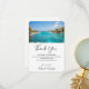 Tack vare bröllop-kortet med ett vackert foto med en tropisk strandort. Söt blå stranden vatten och vit sandstrand med överskötta hinnor ge det en stillastående övibe.