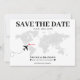 Svartvit världskarta bröllop spara datum-kort för ett destinationsbröllop. Anpassa den med din händelseinformation.