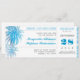 Vacker akvarieblått överlägg handflatan träd sparar datuminbjudan i ett boardingkort biljett stil. Perfekt tropiskt spara datumet biljett för ett turistbröllop på stranden. —Om du trycker på CUSTOMIZE IT-knappen kan du ändra teckensnittet stil, färg, storlekt, flytta det osv. Det kommer att ge dig fler alternativ! Kontakta mig om du har en begäran från anpassningsbar färg.
