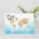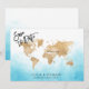 Planerar du bröllop på en romantisk destination? Bjud in dina gäster med denna vackra inbjudan med världskarta i guld och din anpassade destination markerad med det flyttbara hjärtat.